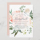 O chá de panela floral elegante e moderno apresenta um buquê de pedras de água pastel macia em tons de rosa-pincel, pêssego e creme, com folhas botânicas verdes e peludas e eucalipto. Os detalhes do seu chá de panela estão sobrepostos em um elemento branco puro em letras azuis enfumaçados elegantes acentuadas com caligrafia de estilo manuscrito.
