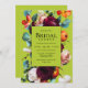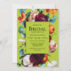 Belamente na moda e tão colorido, este chá de panela tem um fundo verde brilhante e ousado com vários florais que incluem rosas de burgunday e blush com outras folhas mistas de ranunha e eucalipto. O olhar é na moda e fresco. Personalize o modelo de texto com os detalhes do evento. A parte traseira deste convite é vazio, de modo que, se você precisar de espaço adicional para instruções aos seus convidados, você poderá adicionar texto à parte traseira.