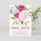 Um chá de panela bonito, ousado e moderno, cor-de-rosa e verde, com um buquê floral de cor-de-água sobredimensionado e uma fonte com estilo gravado de pincel. A parte de trás está robusta e brilhante.
