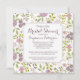 Um tema de jardim encantador de flores roxas e lavandas faz um Chá de panela perfeito na primavera. Delicar floresce em tons de ameixa e roxo adornam tanto a frente quanto o verso deste convite quadrado e cada linha pode ser personalizada para qualquer necessidade.