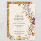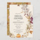 Celebre seu evento com esses Convites de chá de panela Florais de Pumpkin Boho de Queda elegantes. Apresentando uma abóbora laranja, lindas flores silvestres, borboletas e fundo na mostarda amarela, esbranquiçada, roxa e verde. Todo o texto pode ser alterado.