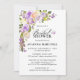 A caligrafia elegante e as bonito flores roxas criam este convite para chás de panela de aquarela.