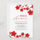 Chá de panela elegante e simples com flor de cereja vermelha e texto vibrante para caligrafia.