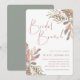 Convide os convidados a comemorar a noiva a estarem com estes convites elegantes e românticos de brunch de chá de panela numa paleta de cor neutra e suave de verde sábio, esticada, rosa empoeirada e argila de terracota leve. O simples design floral apresenta o "brunch bridal" em script manual casual, com os detalhes do evento alinhados no canto inferior direito. Buquês de flores aquáticas e folhagem de estilo boho nos cantos completam o design.