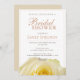Este chá de panela moderno e elegante é excelente de celebrar uma noiva-a-ser. Um convite floral com uma linda rosa amarela. O fundo é branco e o texto está na cor de pêssego. Você pode personalizar facilmente todo o texto - personalizá-lo com seu nome, data, local, RSVP e nome do repositório, e alterar ou apagar qualquer texto do convite. O verso está em cor bege.