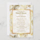 Profusão incrível de rosas brancas desenhadas em Convites de chá de panela personalizados. Este design de chá de casamento tem uma faixa de ouro elegante na placa de volta com a arte do texto Love. Design está disponível em várias cores. Estes Convites de chá de panela vão adicionar um toque único ao tema do seu casamento. Todo o texto na frente do convite para chás está pronto para você personalizar com suas informações.