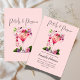 Flores Elegantes de Jardim com Vidro de Champanhe, Berries e texto "Petais e Prosecco" Chá de panela com tema Floral em cores lilás, lavanda, rosa-pincel, pêssego, damasco e verde.