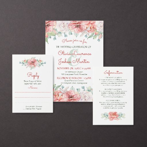 Estes convites de chá de panela apresentam um belo design floral de aquarela com flores cor-de-rosa e cor-de-rosa pessegueira. A parte de trás dos convites tem um padrão floral correspondente. Estes convites fazem parte de uma coleção que inclui uma gama de itens de suíte de casamento correspondentes. Visualize a página de coleta ou visite nossa loja para ver o intervalo de cheios.