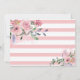 O design apresenta um buquê floral de cor-de-água cor-de-rosa-claro e escuro e um fundo estriado branco e rosa na parte de trás do cartão.