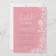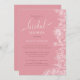 Elegante Chá de panela Floral Rosa Suave Este convite apresenta flores desenhadas em branco e caligrafia personalizada. A cor rosa suave é o pano de fundo perfeito para este convite.