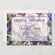 Chá de panela Floral Púrpura Elegante desenhado com um belo buquê de flores em tons suaves de púrpura com borda roxa e texto. O texto frontal inclui: Nome, Data do Evento, Hora e Local da Noiva. O texto inverso inclui: Detalhes de RSVP. Para personalizar, basta inserir o texto no nosso modelo fácil, substituindo o texto de exemplo. Este Chá de panela está disponível em Impressão e Download.