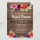 Um chá de panela com charme rústico e estilo "boho", este design tem um rico fundo de madeira de celeiro embelezado com rosas coloridos de aquarela e flores misturadas em laranja russet, cor-de-rosa profundo, burgundy, amarelo com sotaques verdes. Personalize o modelo de texto com seus detalhes. Você pode adicionar ou remover linhas de texto conforme a necessidade e mover o texto em volta para reposicioná-lo, se desejar.
