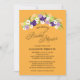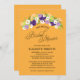 Aperfeiçoe para um chá de panela do estilo country. Um pulverizador rústico das flores nas cores profundamente - do roxo, Lilac, amarelo com os wildflowers da margarida branca. Fundo amarelo alaranjado brilhante. Se você tem quaisquer perguntas neste design ou quer uma mudança da cor nas flores combinar seu wedding por favor envie-me por correio electrónico que paula@labellarue.com igualmente verifica para ver se há os cartões do ASSENTO da série, do CONVITE, do RSVP, da RECEPÇÃO e do CONVIDADO do casamento combinar! Não esqueça escolher seu favorito cardstock para tê-lo imprimido sobre!