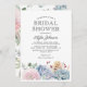 Convites de chá de panela de casamento elegantes com um fundo branco clássico, uma mostra de aquarela de flores e suculentos pastéis, e um modelo de festas de na moda, que é fácil de personalizar.