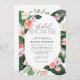 Chá de panela tropical de aquarelas. Chá de panela em moldes tropicais modernos com ilustração aquosa. Este belo e elegante design de chá de panela floral de praia tropical apresenta uma adorável combinação de orquídeas de cor d'água roxa, hibisco e folhas de palma com verde. Estes cartões são perfeitos para uma festa de chá de panela tropical, chá de panela de destino, chá de panela floral, ou qualquer noiva que ame orquídeas tropicais e verde. Fácil de personalizar com suas próprias informações. Consulte a coleção de cheios aqui: https://www.zazzle.com/collections/watercolor_tropical_flowers_and_leaves-119671500108864210