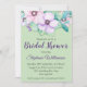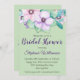 Um anúncio bonito de chá de panela verde de menta pastel, com um adorável padrão floral de flores rosa e roxas com amoras roxas no topo do cartão. O mesmo design floral está no sentido inverso, apenas em tamanho maior. Todos os detalhes (incluindo a fonte, cor e tamanho das fontes, etc.) podem ser alterados nas opções de personalização acima.