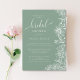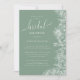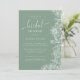 Este convite apresenta flores brancas desenhadas em linha e caligrafia personalizada. A cor verde de sábio suave é o pano de fundo perfeito para este convite.