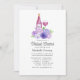 Vinho de casamento florado de aquarelas, que se assemelha a um chá de panela virtual com ultra violeta e tons de roxo. As flores incluem hidrangea, lavanda, peonias e rosas.