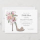 O chá de panela apresenta calçado de salto alto brilhante adornado com flores. Pode ser usado para qualquer evento alterando o texto do evento.