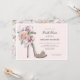 O convite cor-de-rosa esbranquiçado apresenta um calçado de salto alto brilhante adornado com flores. Pode ser usado para qualquer evento alterando o texto do evento.