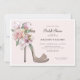 O convite cor-de-rosa esbranquiçado apresenta um calçado de salto alto brilhante adornado com flores. Pode ser usado para qualquer evento alterando o texto do evento.