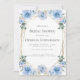 CHÁ DE PANELA DE CASAMENTO | Formas geométricas com peônia azul-céu e flores magnólias - uma moldura geométrica do tipo terrário multifacetada dourada adornada com arranjo botânico. O reverso é uma cor complementar coordenada. Personalizar texto, estilo de fonte, cor e tamanho. Arte original criada para o BarefootBride™ por © WhimsicalArtwork™ - Esta é parte de um Conjunto completo de Artes de Casamento, chá de fraldas e outros artigos de papelaria para eventos semelhantes.
