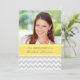Chá de panela personalizado de convites para modelos de foto em elegante amarelo canário brilhante, cinza e branco padrão de listras casuais e retrô-chevron, quic e feminino, personalizável com seus detalhes de chá. Também disponível em cartões de agradecimento e convites para a festa noiva.