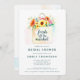 Celebrar a noiva com este charmoso chá de panela "Fresco do Mercado"! Apresentando um design minimalista refrescante, essa modelo apresenta uma saborosa bolsa de tota de aquarela cheia de belas flores de mercado, criando um toque quente e elegante. A parte de trás adiciona um encanto extra com um toque suave de salpicos de aquarela em cores pastel de primavera. Perfeito para uma nova celebração na moda, este convite é perfeitamente personalizável para se adequar ao seu evento especial!