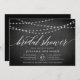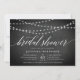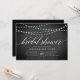 Nossos convites de chá de panela elegantes e rústicos em preto e branco apresentam um fundo de quadro com cordas de luzes brancas no topo, e "chá de panela" na tipografia de scripts de caligrafia. Personalize com seu chá de panela e detalhes do registro abaixo em letras brancas.