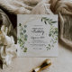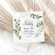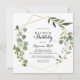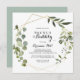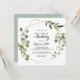 Esse chá de panela geométrico tropical e borbulhante é perfeito para um simples chá de casamento. A design apresenta lindas folhas verdes pintadas à mão, enfeitando um quadro geométrico dourado.