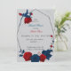 flores vermelhas elegantes e azuis marinhos num chá de panela geométrico de fundo de cinza