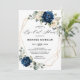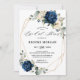 Chá de panela floral azul marinho escuro com um buquê elegante de azul marinho, azul real, branco, ouro, marfim de champanhe, rosa de cor esbranquiçada, hydrangea, ranunculus, pénia, botões de flores e folhas verdes de eucalipto sábio e elegante cor de água com estrutura neutra geométrica de brilho redondo. Entre em contato comigo para obter ajuda sobre a personalização ou se você precisar de outro produto com este design.
