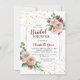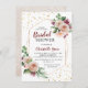 Chá de panela de coroa floral em vermelho borrado e brilho dourado. Este elegante design floral pode ser personalizado para um chá de panela, um brunch, um almoço, um janto ou outra ocasião. Itens correspondentes podem ser encontrados no meu compro Zazzle: www.zazzle.com/store/violinevents