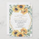 Convites de chá de panela geométricos Dourados Elegantes Russos de Girassol Design apresenta Moldura Geométrica Rústica Elegante Girassol Elegante com Sucursais Eucalyptus Greenery Frame Botânico com Cantos Adoridos no Fundo