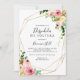 Esta queda geométrica tropical de ouro em Espanha é perfeita para um chá de casamento moderno. A design apresenta cor-de-água rosa, esbranquiçada, amarela, azul e branca, que cai em pedras com folhas verdes botânicas, enfeitando uma moldura geométrica.