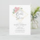 Convites de chá de panela geométricos de eucalipto verde e rosas cor-de-rosa pinceladas com estrutura geométrica dourada e lavagem com aquarela de menta inversa.