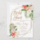 Chá de panela de Aloha Floral Vermelha Geométrica Verão ou chá de panela temático Havaiano com uma falso estrutura geométrica de ouro e cabeçalho, dois arranjos florais tropicais com hibisco vermelho e abacaxi de ouro. Este chá de panela floral é ideal para um chá de panela de verão.