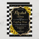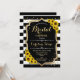 Chá de panela. Elegante, design floral com girassóis, ouro brilhante falso e listras preto e branco. Possui fonte moderna de script e confetti. Perfeito para um chá de panela na moda. Personalize com seus próprios detalhes.