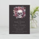 Apaixonem-se por celebrar seu chá de panela gótico ou chá de panela de Halloween com esse chá de panela escuro e romântico apresentando um crânio floral em um fundo vermelho escuro, quase negro. A parte de trás apresenta um fundo de flores correspondente com peões escuros e rosas. Use a ferramenta design e clique em "personalizar mais" para editar o estilo da fonte, o tamanho do texto e a posição dos gráficos, se desejar.