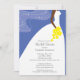 Comece seu evento com nossa linda silhueta de um vestido branco e um véu fluido sobre um fundo azul com flores amarelas, Chá de panela de noiva americana africano. Apenas personalize nosso convite com suas informações de casamento e você está pronto para ir.