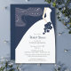 Comece seu evento bem com nossa bela silhueta de um vestido branco e um véu fluido em um Chá de panela azul de meia-noite. Apenas personalize nosso convite com suas informações de casamento e você está pronto para ir.