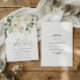 Convites de chá de panela elegantes - Buquê de Buquê Floral Branco de Folhagem Verde (Registro e Site de Casamento no Verso): Estes convites de chá de panela de verde de cor d'água são perfeitos para uma noiva de inverno ou chá de casal! Com grandes marinhos florescendo e uma dica de brilho dourado, seus hóspedes certamente ficarão impressionados! A parte traseira apresenta um design de folhagem simples com as informações do registro do casal e do site (você pode excluí-lo se não quiser). Altere seu texto para torná-lo seu. Você também pode alterar a cor do texto e a cor do plano de fundo!