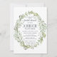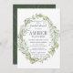 Este belo convite apresenta uma coroa verde de folha d'água e a sua descrição do casamento escrita em uma bela fonte. Perfeito para um tema de casamento de primavera. Altere o tamanho, estilo e cor da fonte clicando no botão 'Personalizar'. Reformule o convite para ajustado do seu estilo pessoal. Itens correspondentes estão disponíveis.