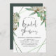 Eucalyptus Greenery and White Magnolia Floral Botanical Watercolor Convites de chá de panela Spring Wedding em fundo branco - inclui belíssima e elegante tipografia de roteiro com folhas botânicas modernas e verde para a celebração especial Bride Be.