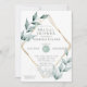 Chá de panela | Botânica Verde de Jade Cinzento - variações do Verde de Jade Cinzento - folhas verdes acinzentadas de cima e de baixo sobre a estrutura dourada do estilo terrário, uma mão falsa fez textura de papel num tom verde de jade muito leve no verso. Fresco e simples, mas deliciosamente elegante. Esta é parte de uma coleção de suite de casamento coordenada por design, projetada pelo BarefootBride™. Possui um estilo de texto clássico simples (que pode ser alterado se você quiser clicar em Personalizar este modelo e, em seguida, na lista suspensa, clique em Clicar para personalizar ainda mais - aqui você pode alterar a fonte e as cores do texto)