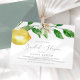 Este chá de panela horizontal moderno de limão é perfeito para um chá de casamento de primavera ou de verão. O design mediterrânico rústico apresenta limões aquosos brilhantes e bonitos com flores brancas boêmicas e folhas verdes elegantes.