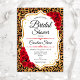 Chá de panela. Design vermelho elegante com ouro brilhante e impressão animal leopardo. Apresenta rosas vermelhas e fonte de script de tendência. Perfeito para um Chá de panela na moda.