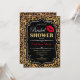 Chá de panela. Design preto elegante com ouro brilhante e padrão de impressão leopardo. Apresenta lábios vermelhos beijando, confetti e fonte de script. Perfeito para um chá na moda. Envie-me uma mensagem se precisar de mais personalização.