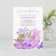 Chá de panela elegante e simples com flor de gerânio roxo rosa e texto vibrante caligráfico.