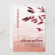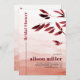Este chá de panela por um casamento outono exude elegância com seu design inspirado no Japão. O impressionante plano de gradação de aquarela e o delicado modo de ramificação fazem uma combinação impressionante. A abordagem design-minimalista é destacada por uma linha vertical à esquerda que se estende perfeitamente para o topo, onde as palavras "Chá de panela" são adicionadas elegantemente. Os terractos quentes e tons vermelhos castanhos do gradiente de aquarela complementam lindamente a simplicidade do galho. O verso do convite também apresenta o mesmo gradiente e a mesma linha vertical, com os termos "Chá de panela" a seguirem novamente o design.